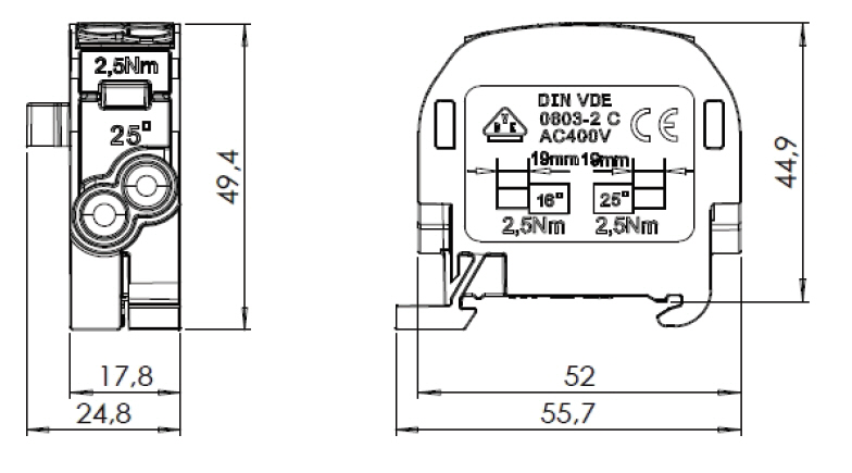 und 2×16 mm² Kupferleiter bietet er ausreichend Spielraum für unterschiedlichste Installationsanforderungen. Zusätzlich ist die
